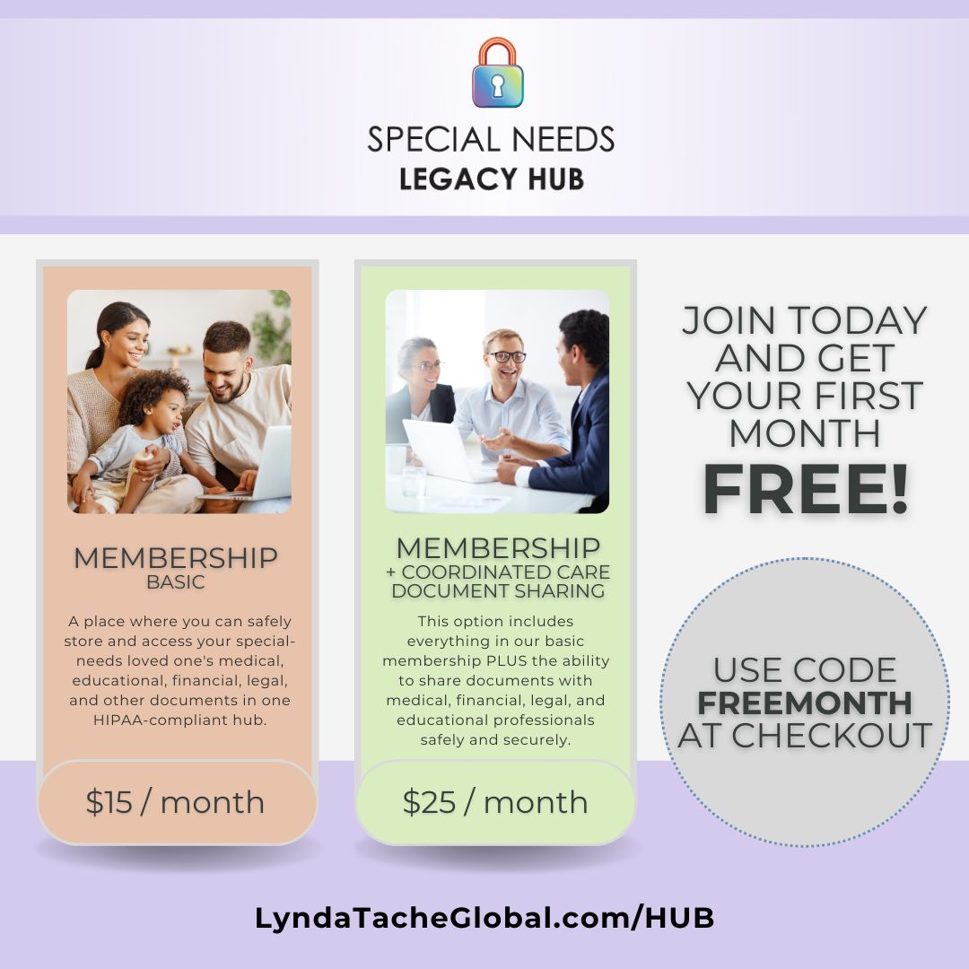 At Lynda Tache Global, we are honored to be a part of your personal autism and other special needs life journey. The Special Needs Legacy HUB document storage membership is a first-of-its-kind platform, dedicated to organizing critical life documents in one electronic customized HUB today, tomorrow, and beyond.